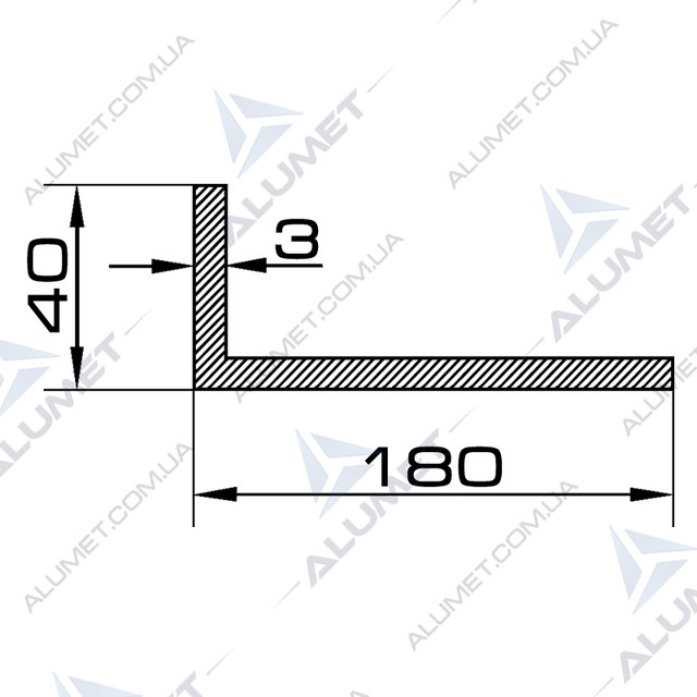Кутник алюмінієвий 180х40х3 мм без покриття